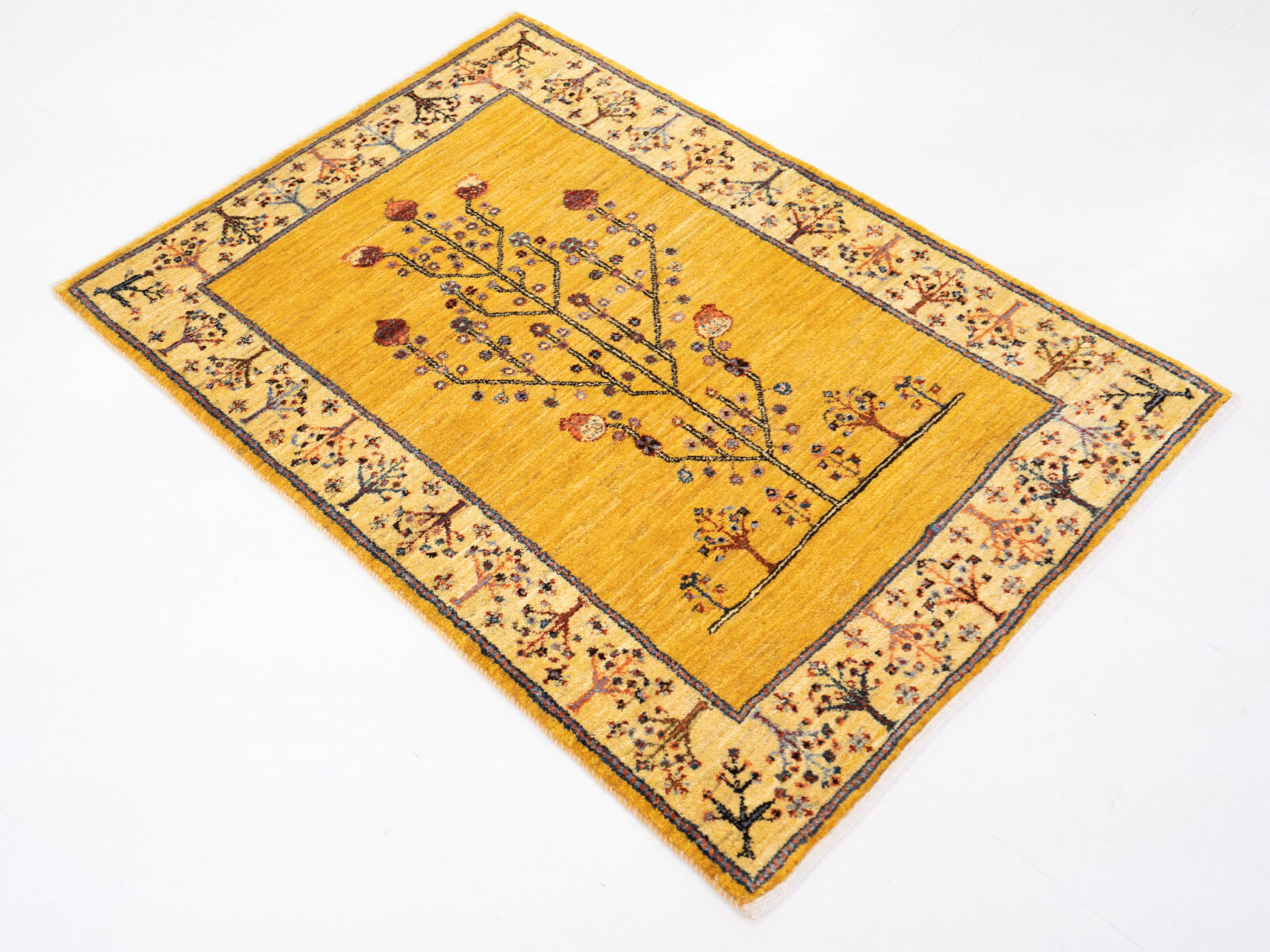 カテゴリー:ラグ120×80サイズ タグ:カラー:黄金色、文様:生命の樹、紋様:ザクロ、織りランク:ルリバフ